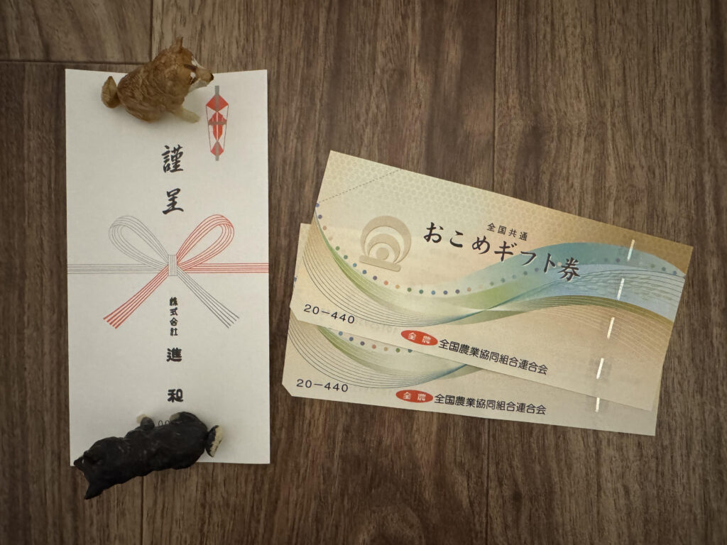 2025年12月にお米券が到着しました!近年お米の価格が大きく上がっているのでお米券は非常に有難いです。(買うと500円、使うと440円というのは手数料の差が大きすぎると感じてしまいますが。。。)