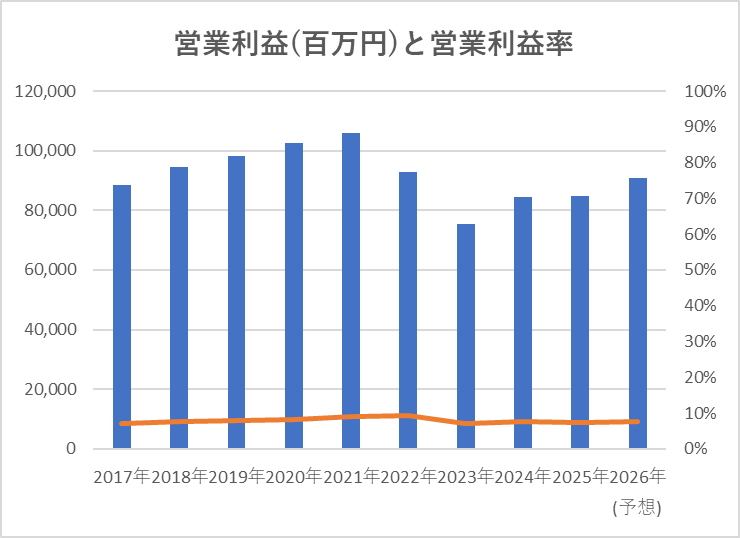 | 売上・営業利益の安定度 | ★★★☆☆ | 売上:コロナ禍で減少。その後回復傾向 営業利益:コロナ禍で減少。その後回復傾向 ※以下表参照 |