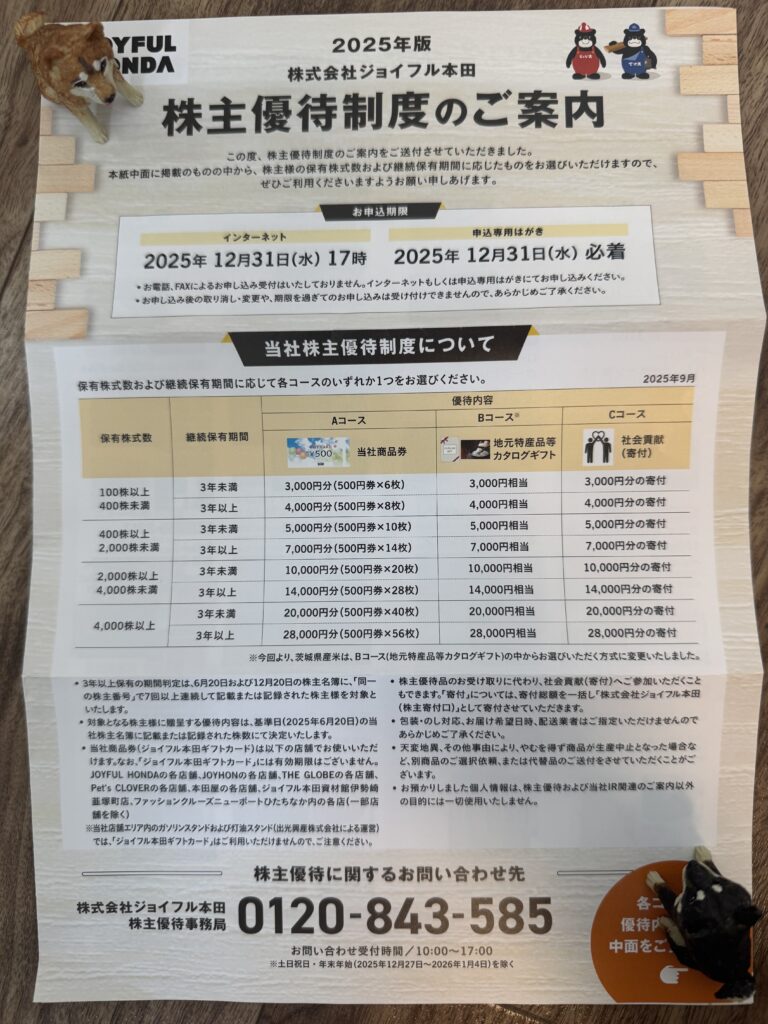 【12年連続増配】【3191】ジョイフル本田からの株主優待が到着!写真付きでレビューします!
