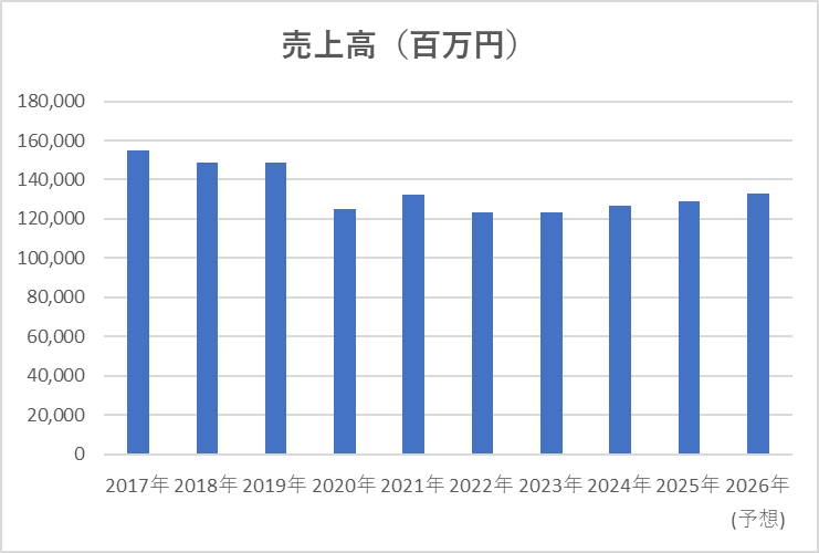 売上・営業利益の安定度★★★☆☆売上:横ばい