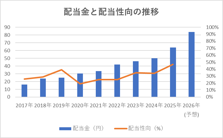 配当性向:基本的には30-50%と健全な水準。
