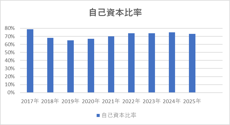 自己資本比率★★★★★60-70%前後と非常に健全な水準
